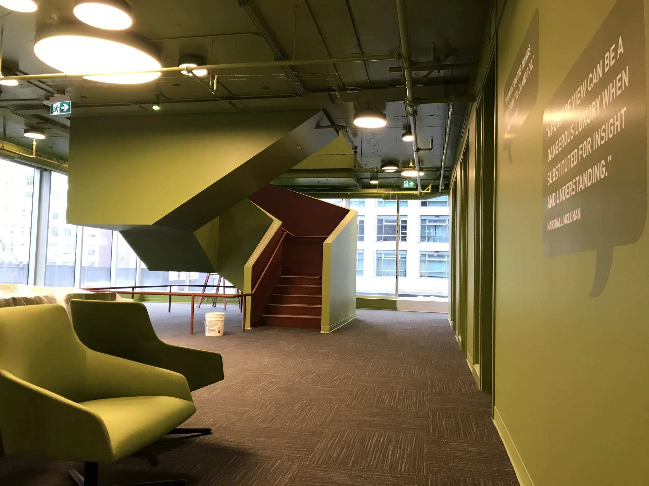 Adler University’s new campus combines architecture, interior design, wayfinding, branding, signage, and storytelling to communicate its unique curriculum. Adler’s colourful cross section—highly visible and truly connected to the street—was informed by the vertical city, curriculum, and the Adler brand.