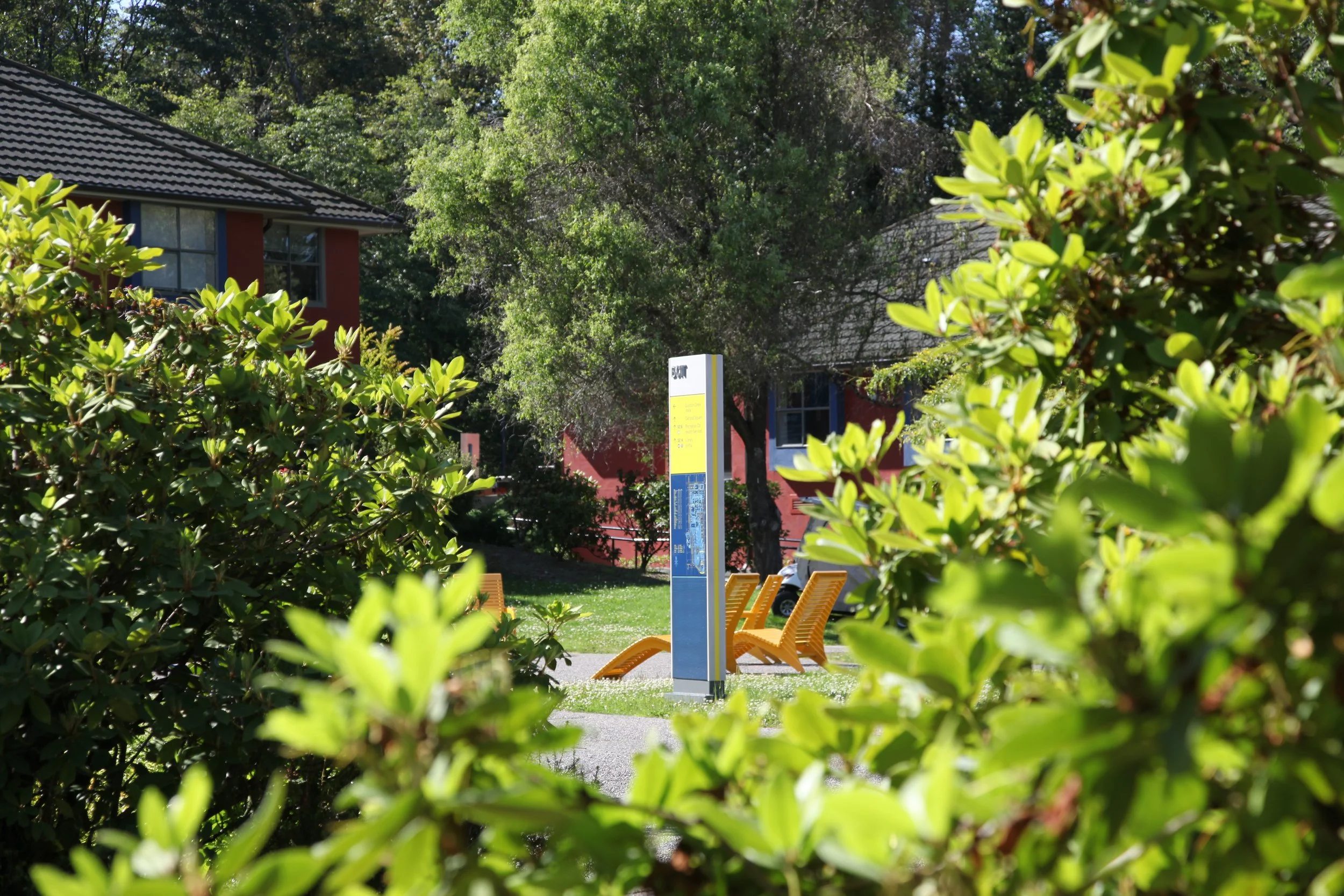 This work builds upon previous work for campus building signage and vehicle gateway signs. It incorporates a level of information and design detail appropriate to pedestrian scale, in keeping with campus plans to create a more walkable public realm.