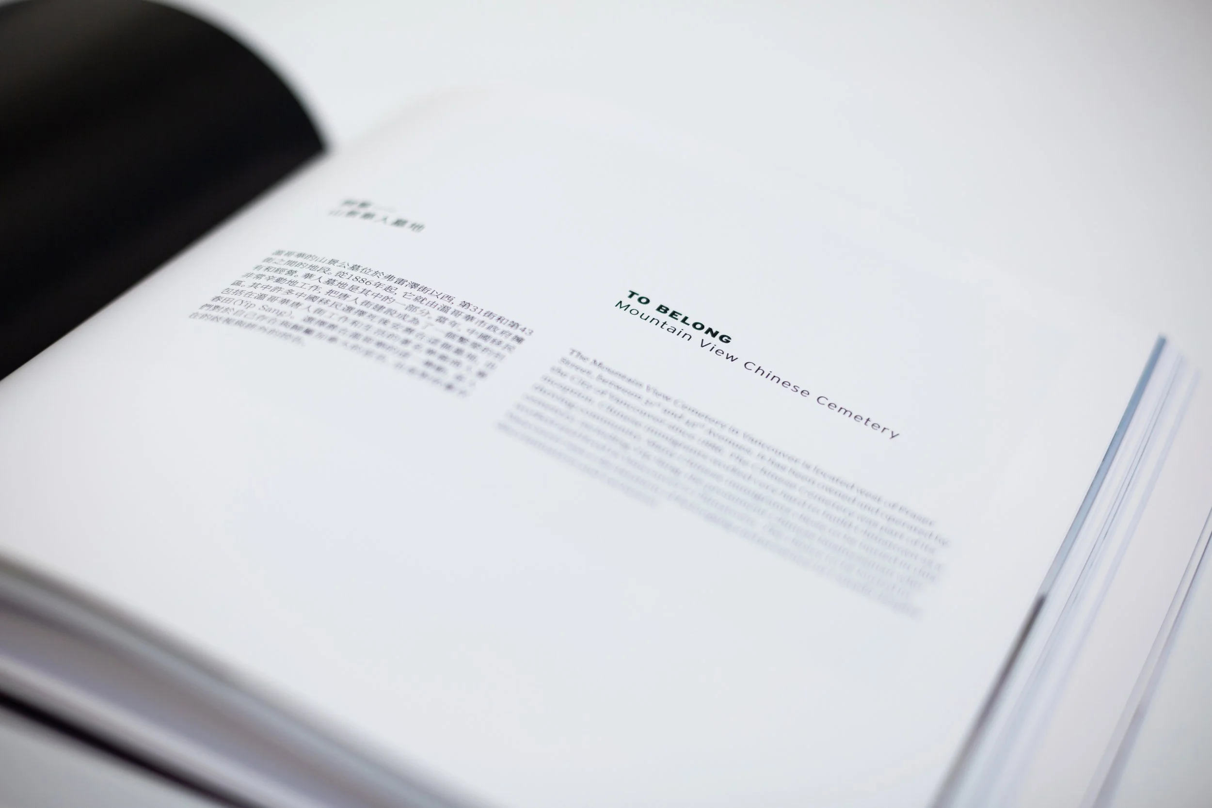 The design of the book echoes the artwork’s themes of memory, distance and loss. The book cover is an atmospheric image of water suggesting movement and displacement centering the ocean that ties together the stories of immigration. The missing middle of the image reflects the absence felt by those left their homeland and those who stayed behind.